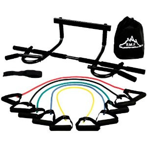 Built for durability and comfort, the B.M.P. pull up bar is the ultimate fitness training tool for strengthening and developing your shoulders, back, arms, chest, abs, and more. This is the perfect workout solution or your home, office, or dorm room. The pull up bar mounts easily to any door frame to become your own personal gym and features 12 grip positions. As a result, you can build multiple muscle groups with a variety of exercises, with the wide-grip positions challenging your upper lats, biceps, and forearm muscles, while the narrow-grip positions put more emphasis on your lower lats. Also you can take it off the door when you want to do push-ups or sit-ups. This versatile pull up bar is one piece of equipment to do pull/chin ups in various grip positions. The pull up bar is designed to fit most doorways 24" to 32" wide. As well as fitting trim up to 3 ½ inches wide. Requires no drilling into walls and makes moving the pull up bar from door to door very simple!