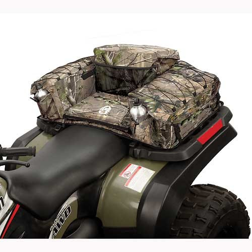 Add comfort and versatility to your hunt when you strap on a Coleman® ATV Rear Padded Bottom Bag with RealTree™ APG camo. This workhorse adds three zippered storage compartments with bungee fasteners on top to keep all your gear close. A couple drink holders will help you stay hydrated in the woods all day, and an extra padded rear seat and back makes a bumpy ride more comfortable all day long. The heavy-duty polyester fabric is water repellant for those rides that take you through some wet conditions.
